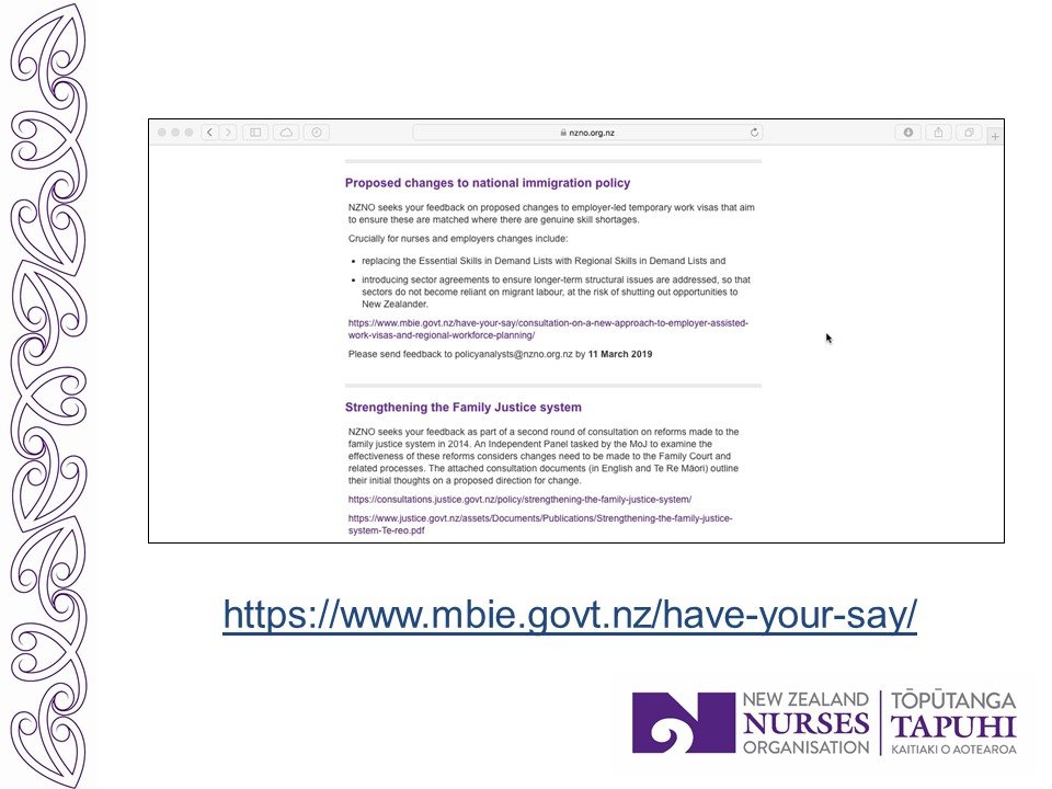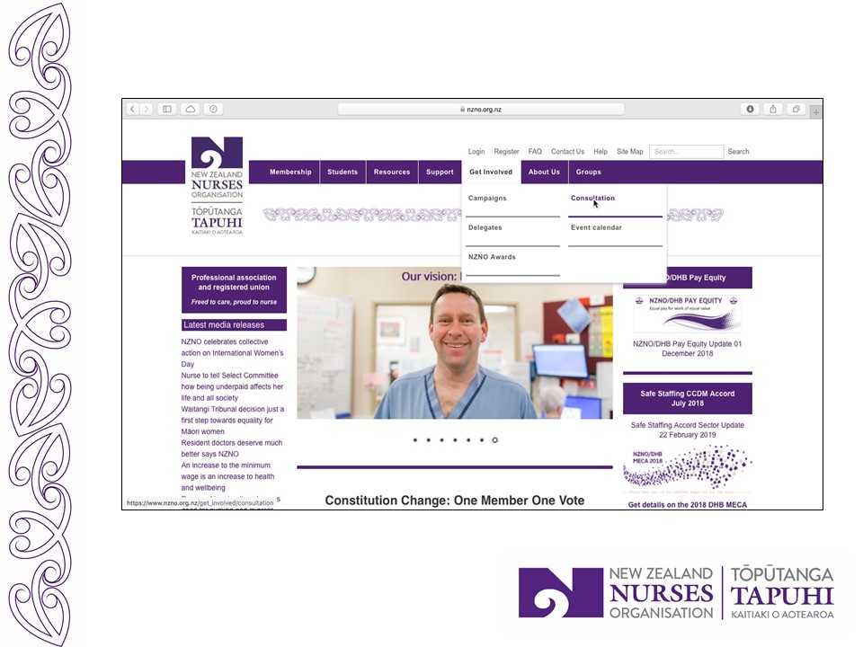 I will conclude by giving some examples from Board level. There, some decisions and a range of views are documented in the Board meeting minutes, which are available to members on the NZNO website.
